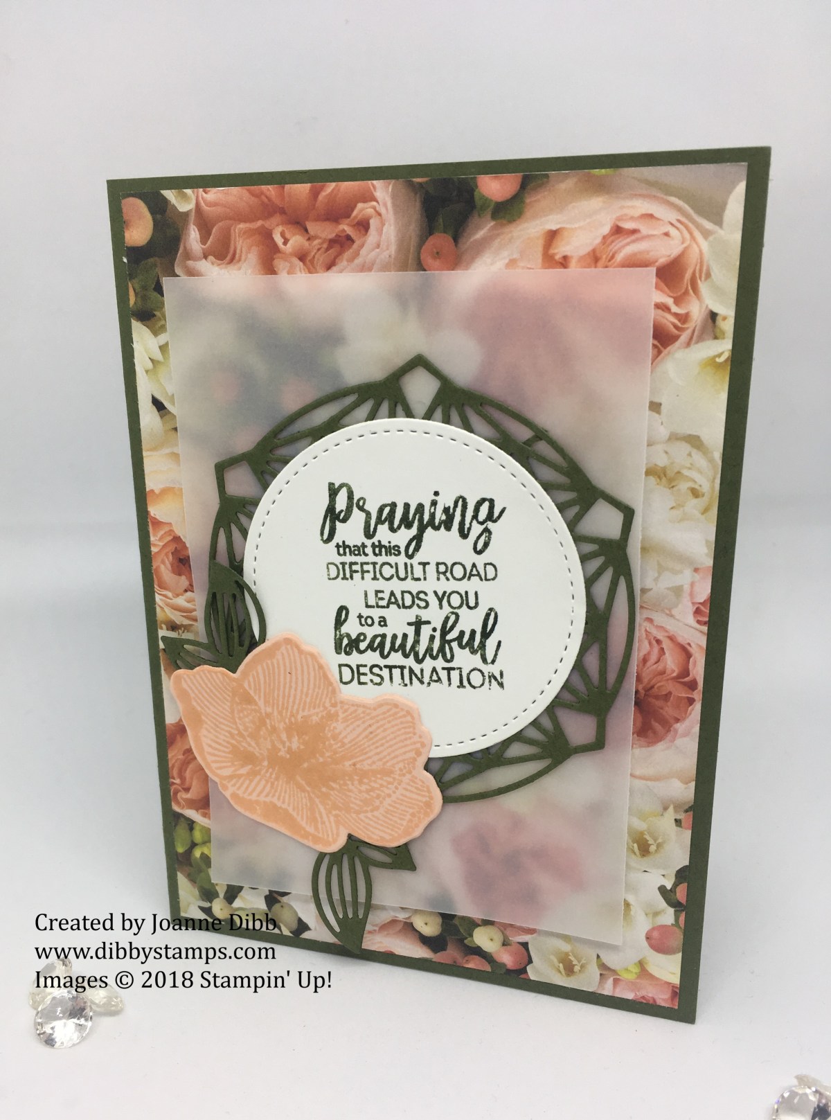 The Petal Promenade suite in the catalogue really appeals to me because of the beautiful floral stamps and dies and a paper pack which is just stunning in real life. I have struggled to use this set though as I found the sentiments hard to work with. For today’s card I’ve been inspired by the examples in the catalogue on page 106, I often look to the catalogue for inspiration when I’m struggling with a set as its a good starting point.