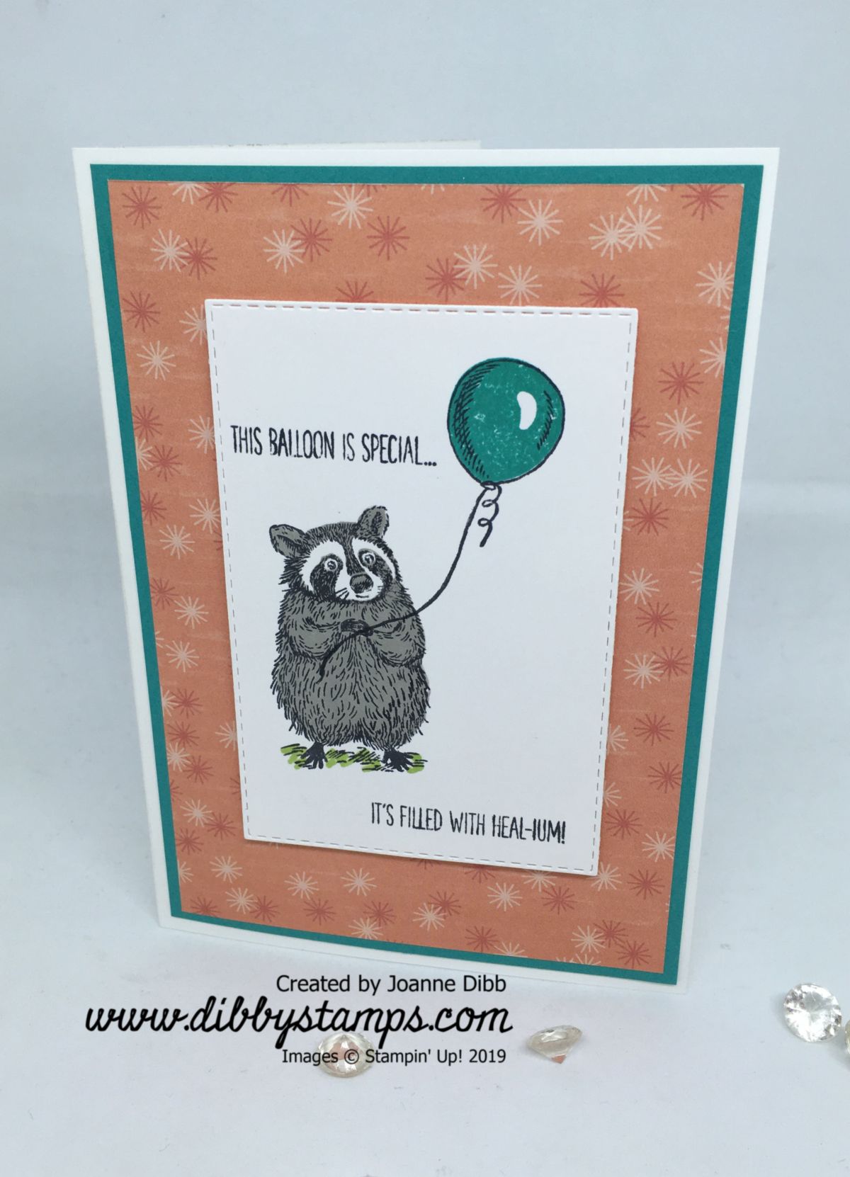 For the stamping I used the Stamparatus to line everything up on my Stitched Rectangle Matt. I used Bermuda Bay, Smokey Slate and Tuxedo Black Memento to stamp the littlr Racoon with his balloon. I hope the recipent will feel better soon.