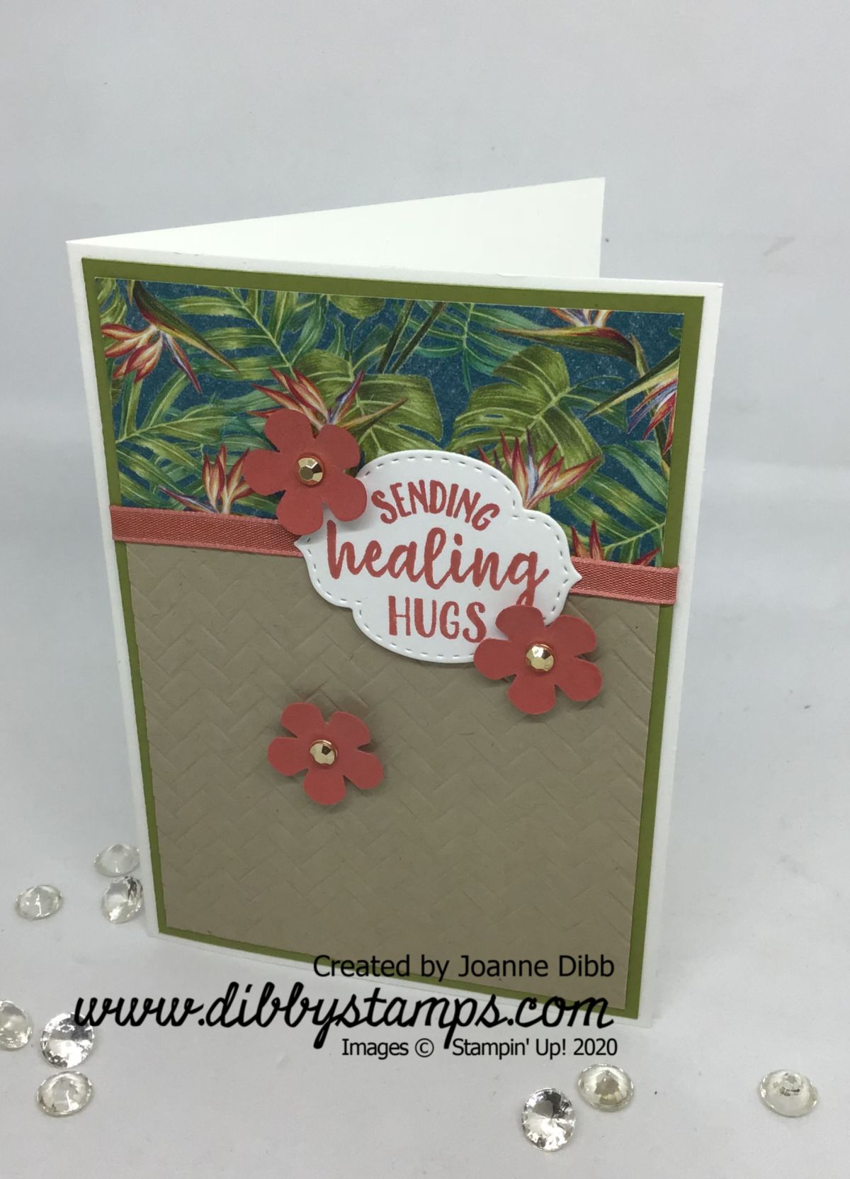 Healing Hugs are something I think we’re all desperate for right now, so why not send a card one to those you care about. I’ve paired this sentiment from the So Sentimental stamp set with products from the Tropical Oasis Suite and the new Ornate Garden Suite.