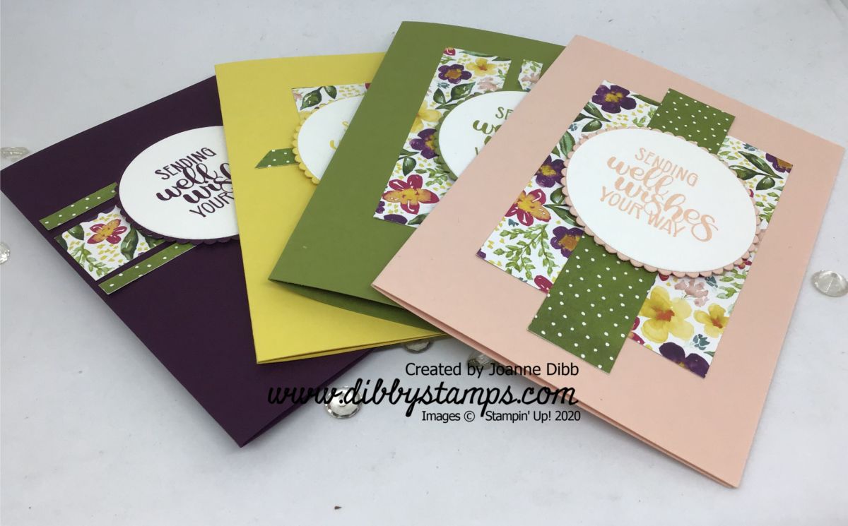 Today I’m sharing four cards which have all been made from one sheet of 6 x 6 designer paper. I used the retiring Best Dressed paper as I love the floral patterns and I chose four colours from this paper as my card bases.