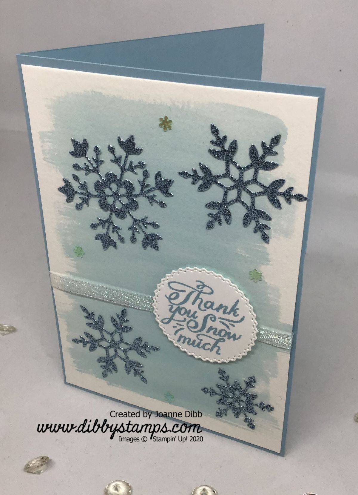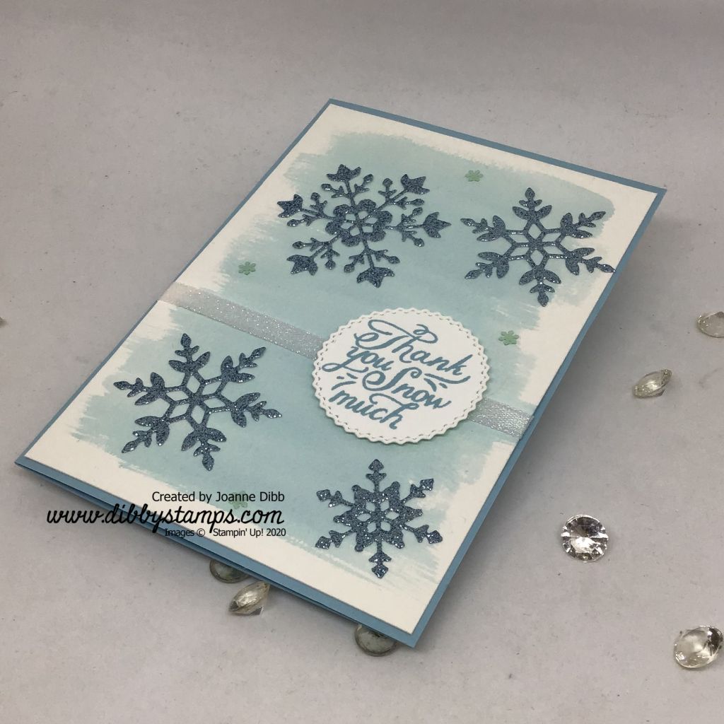 These wonderful snowflakes cut from the So Many Snowflakes Dies make the perfect focal point for any wintery card, here I’ve used them with the greeting “Thank you Snow Much” to make a thank you card.