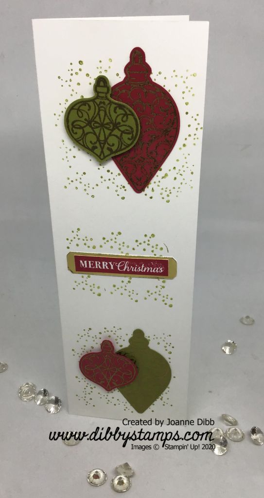 This first one has a traditional colour scheme of Real Redand Old Olive with Gold embossing. If you’re in a real hurry just use the matching ink and forget about the embossing step.