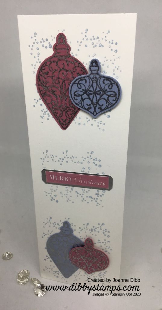 Today’s cards using the Christmas Gleaming stamp set, are perfect if you need to whip up a batch of Christmas cards quickly as the design is simple and easy to replicate in any colour combination. Simply stamp, emboss and punch! These card bases are made from cardstock measuring 20cm x 14, scored at 7cm, so you end up with a tall skinny card.