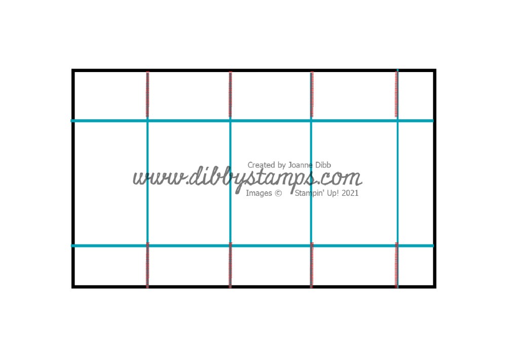 To make the box cut a piece of dsp to 25.5cm x 24cm. On the longside score at 6cm, 12cm, 18cm, and 24cm. Turn the paper 90 degrees then score at 3cm and 21cm.
